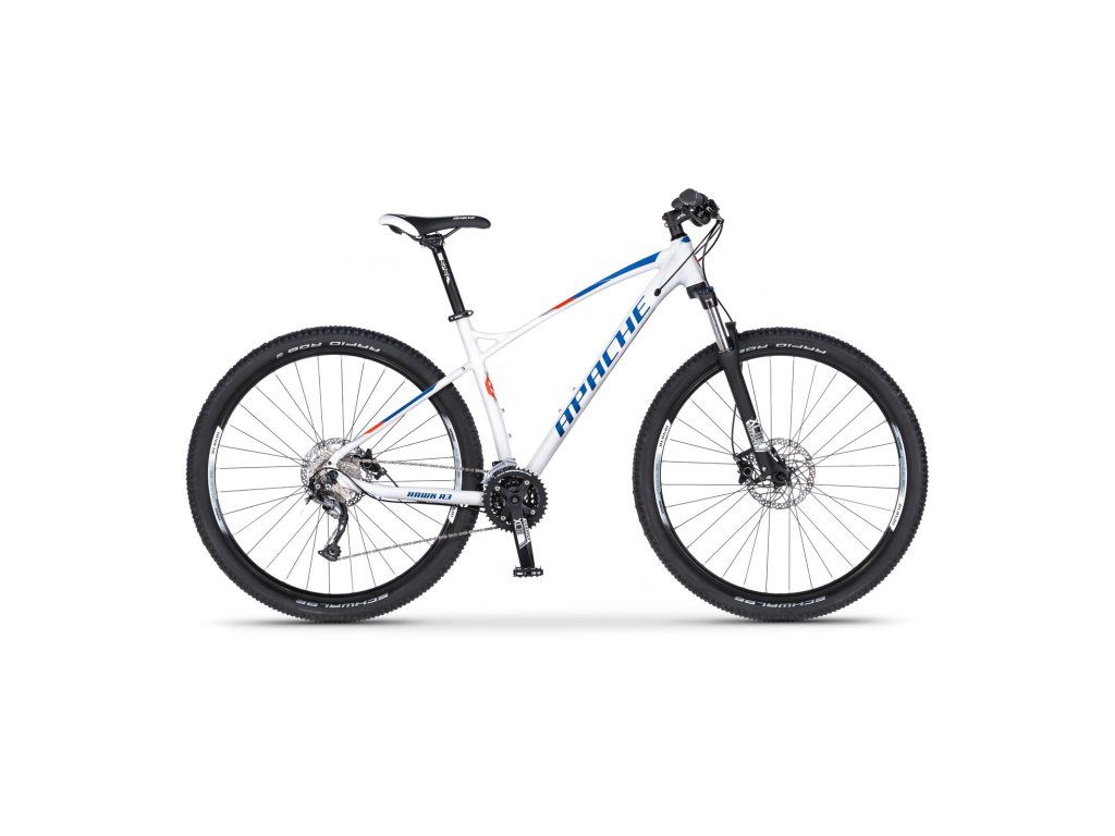 Lehký hliníkový rám, kvalitní odpružená vidlice a devětadvacetipalcová zapletená kola daly vzniknout snadno ovladatelnému horskému kolu, které skvěle poslouží začínajícím i pokročilým cyklistům bez výjimky. Díky sázce na osvědčené a přitom cenově dostupné komponenty je Apache Hawk A3 rozumnou volbou pro každého, kdo to s horskými koly myslí opravdu vážně.