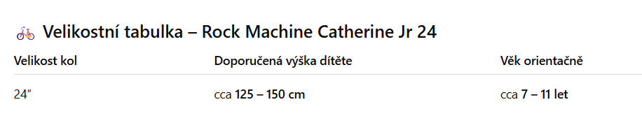 Tabulka velikostí - Rock Machine Catt Jr 24